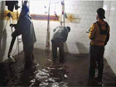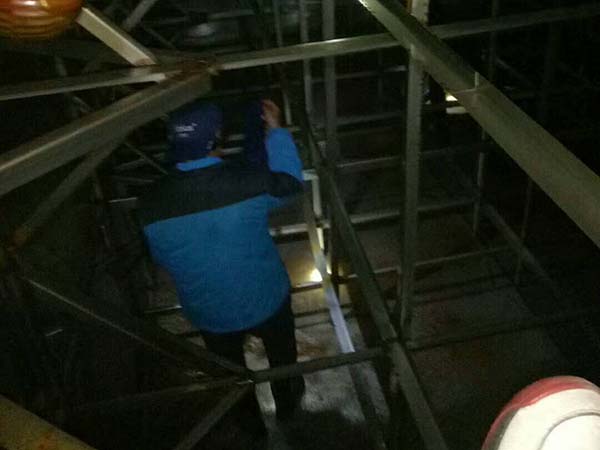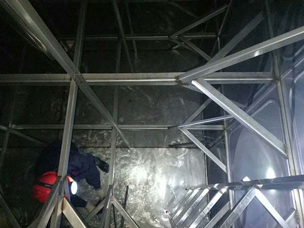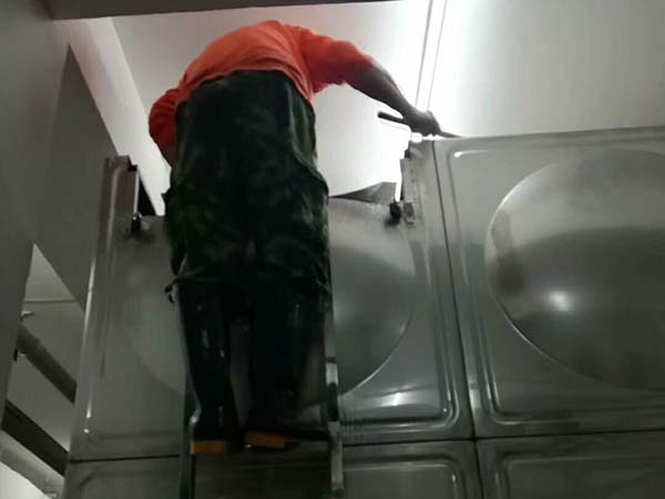水箱清洗人員用專用工具水籠頭進(jìn)水箱進(jìn)行沖刷